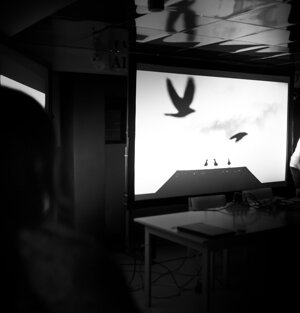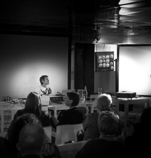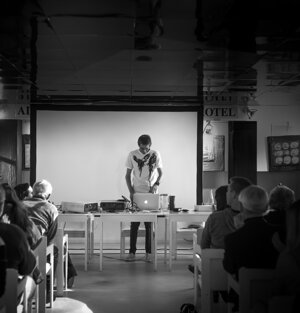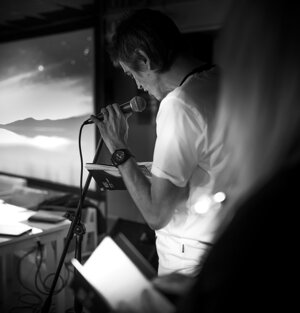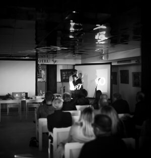 Accompagnato dalla poetessa Laura Margherita Volante e dalla musicista Emanuela Belmonte, l'artista, sotto ogni punto di vista, ha dato vita ad un evento capace di emozionare lo spettatore al di fuori dei confini stretti tipici dell'ambito fotografico o video, creando una vera e propria composizione teatrale.